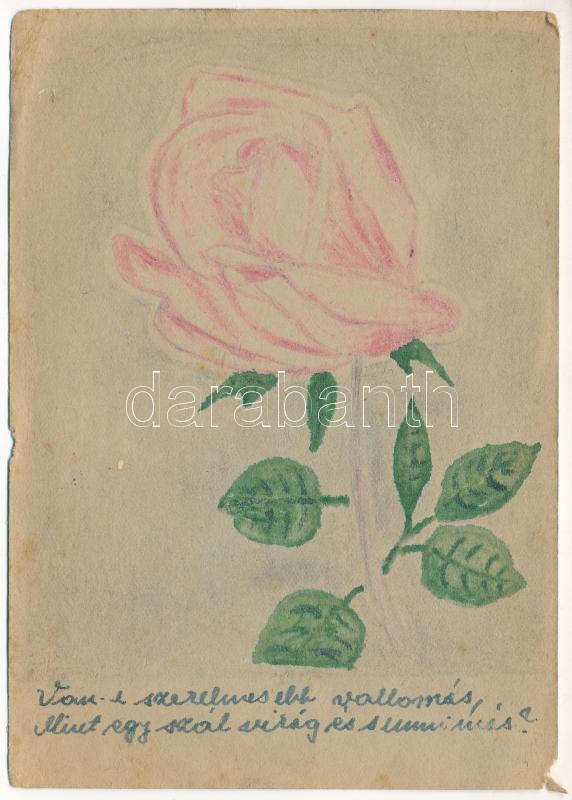 1944 Szerelmes vallomás rózsával. Második világháborús magyar kézzel r... https://www.darabanth.com/en/457-Online-auction/457.0/Postcards/Militaria~1000032/1944-Szerelmes-vallomas-rozsaval-Masodik-vilaghaborus-magyar-kezzel-rajzolt-tabori-postai-~II3026051