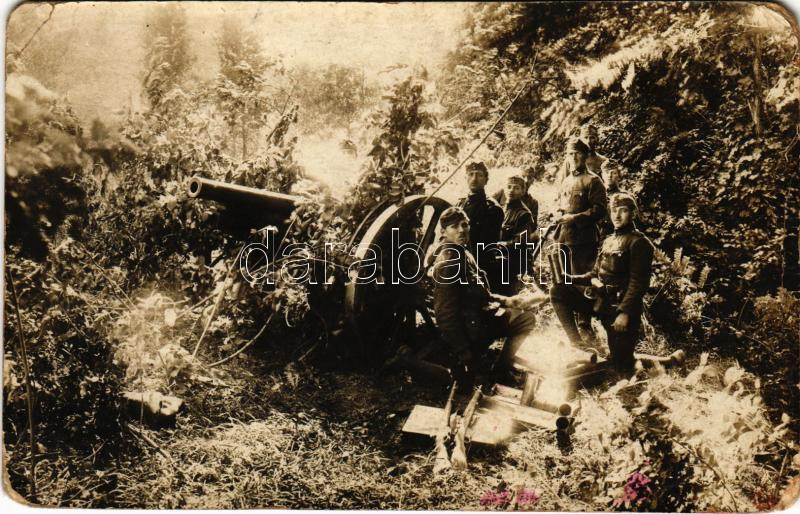 Első világháborús osztrák-magyar katonák álcázott ágyúval / WWI K.u.k. military, soldiers with camouflage cannon. Schäffer photo (fl)