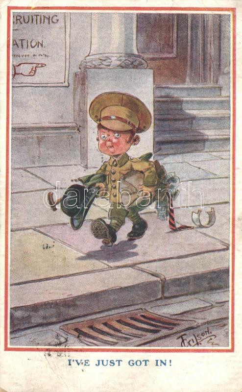 I've just got in! / WWI British military humour, child, British M...