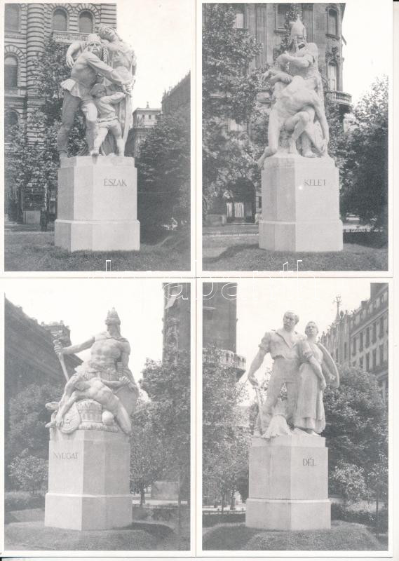 Budapest V. Irredenta szobrok: Észak, Nyugat, Dél, Kelet - 4 db modern reprint képeslap tokban