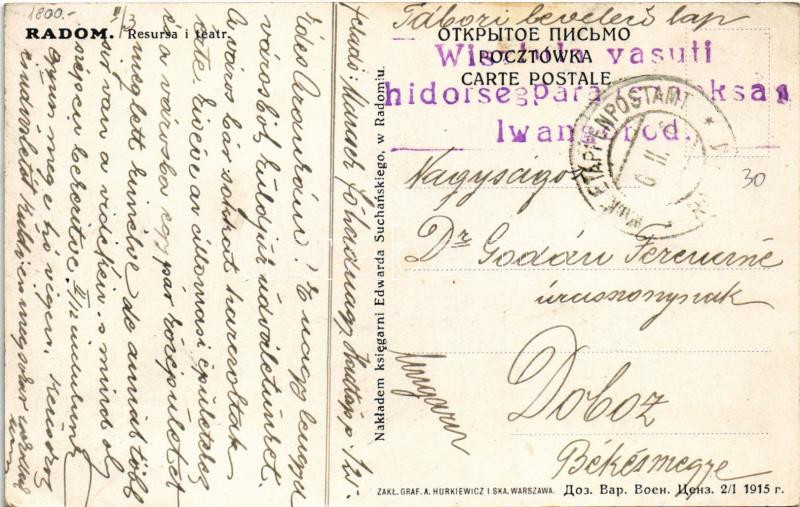 1916 Radom, Resursa i teatr / theatre + "Wisztula vasúti hídőrségparancsnokság Iwangorod" (EK)