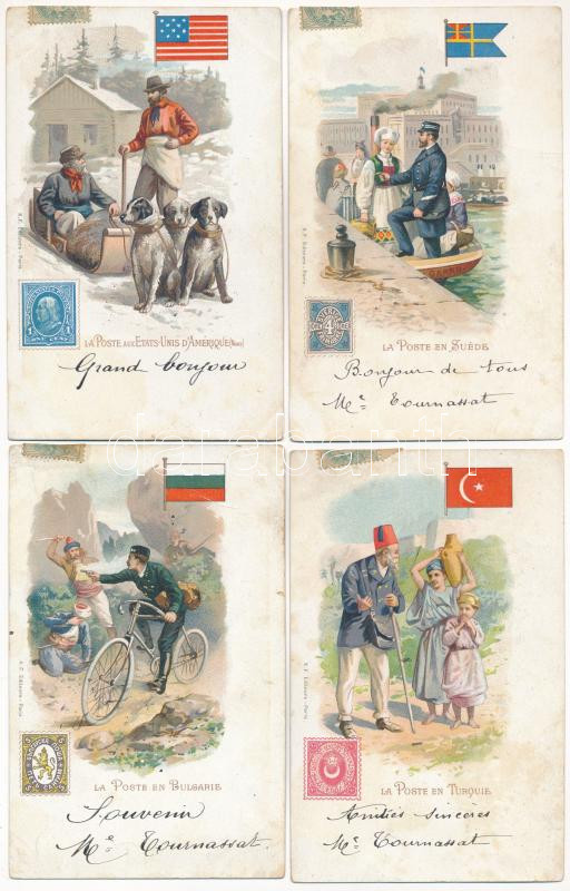 Description: 10 db RÉGI hosszúcímzéses litho képeslap vegyes minőségben: országok és postásaik / 10 pre-1906 postcards in mixed quality: countries and their postmen