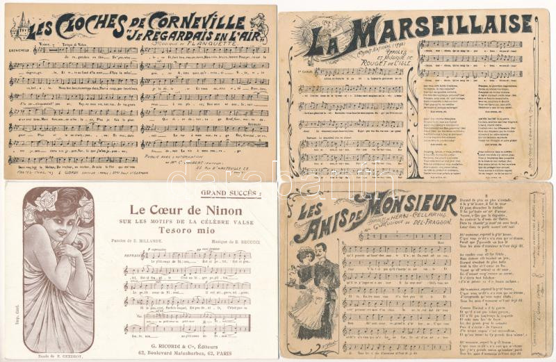 27 db RÉGI francia kottás és zenés képeslap vegyes minőségben / 27 pre...