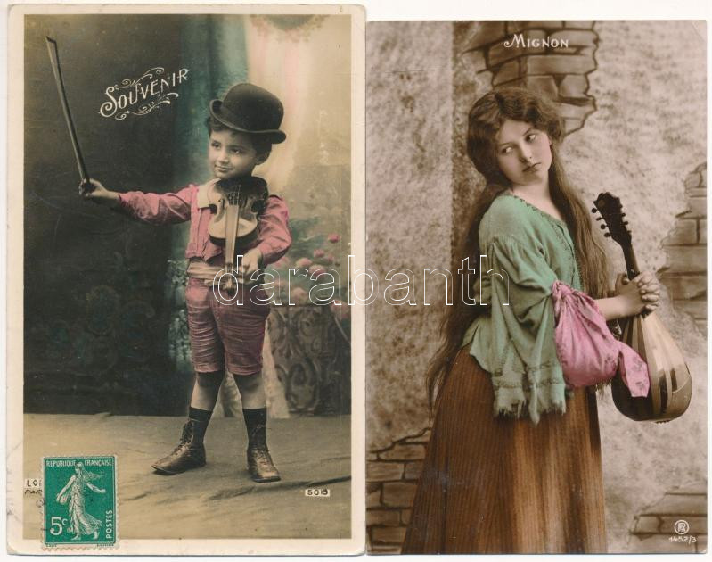 27 db RÉGI francia kottás és zenés képeslap vegyes minőségben / 27 pre-1945 French postcards in mixed quality: music sheets and instruments