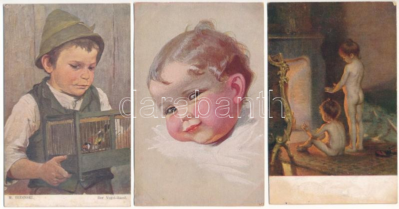 5 db RÉGI művész képeslap vegyes minőségben / 5 pre-1945 art motive postcards in mixed quality