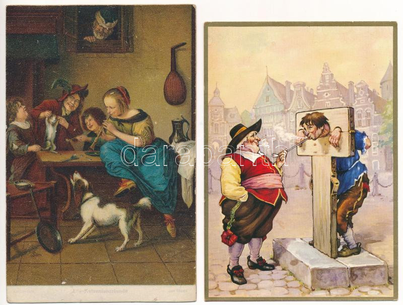 51 db RÉGI motívum képeslap vegyes minőségben: festmények / 51 pre-1945 motive postcards in mixed quality: paintings