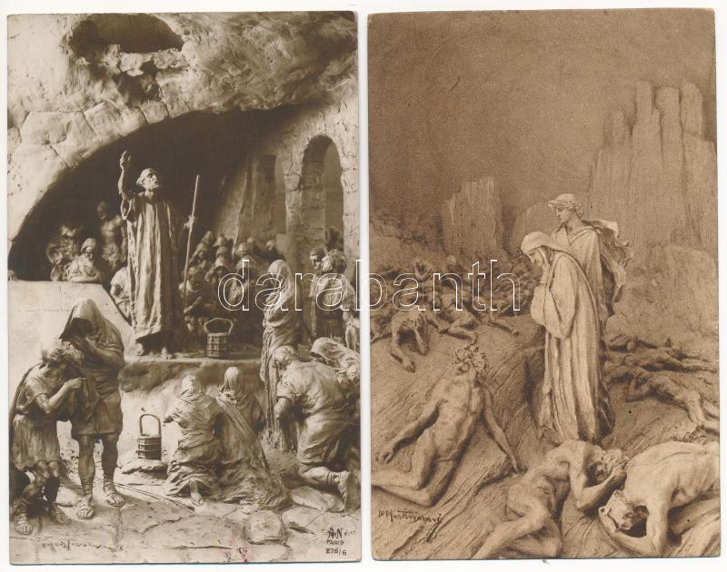 53 db RÉGI művész képeslap vegyes minőségben / 53 pre-1945 art motive ...
