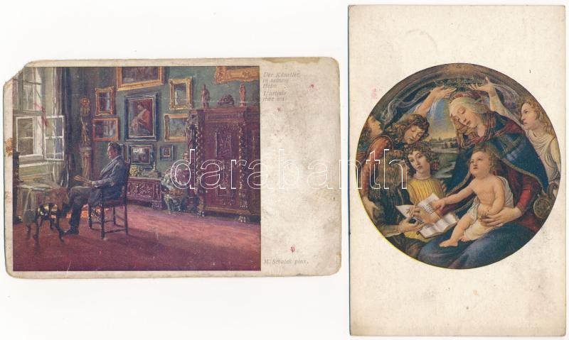 53 db RÉGI művész képeslap vegyes minőségben / 53 pre-1945 art motive postcards in mixed quality