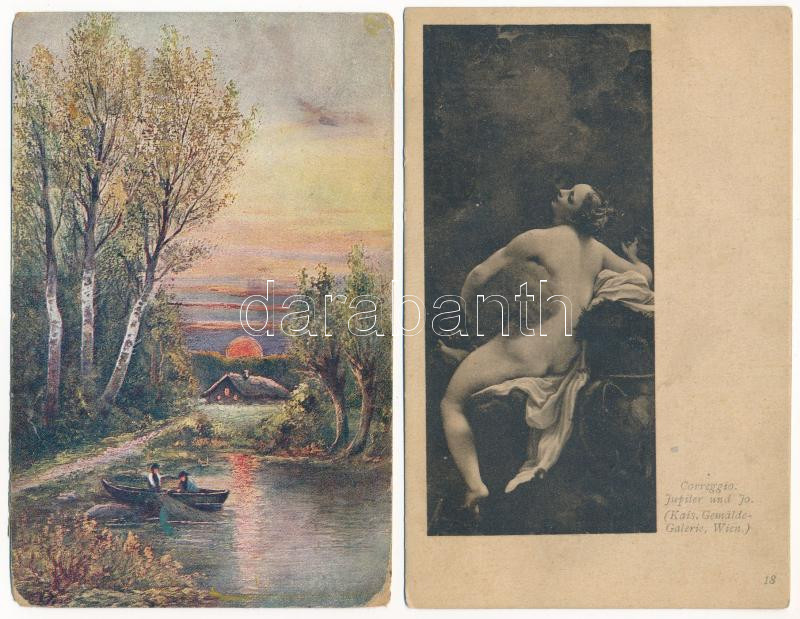 53 db RÉGI művész képeslap vegyes minőségben / 53 pre-1945 art motive postcards in mixed quality