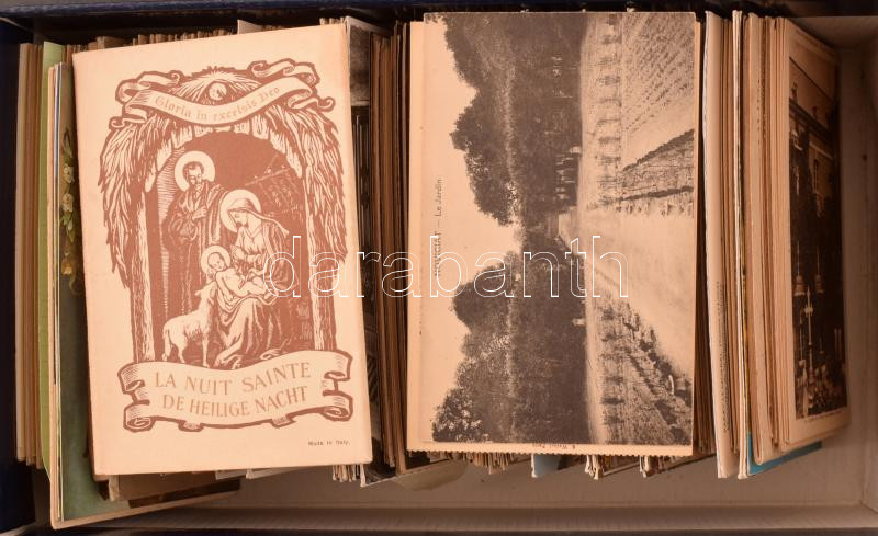 Kb. 600 db főleg RÉGI vallásos motívum képeslap dobozban, vegyes minős...
