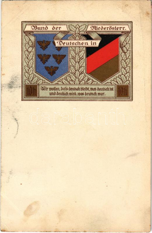 1910 Bund der Deutschen in Niederösterreich. Wir wollen, dass deutsch ... https://www.darabanth.com/en/457-Online-auction/457.0/Postcards/Propaganda-politics~1000044/1910-Bund-der-Deutschen-in-Niederosterreich-Wir-wollen-dass-deutsch-bleibt-was-deutsch-ist-und-d~II2969265