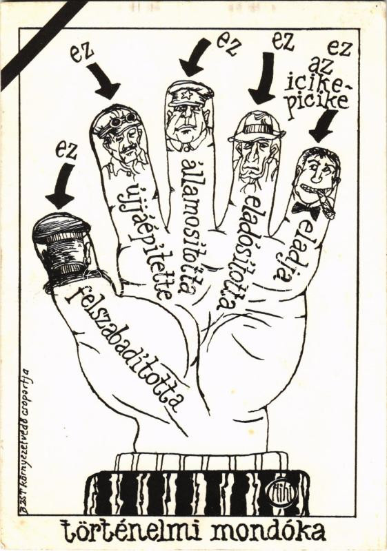 https://www.darabanth.com/en/457-Online-auction/457.0/Postcards/Propaganda-politics~1000044/Tortenelmi-mondoka-BZST-kornyezetvedo-csoportja-Hegedus-Istvan-karikaturaja-EK~II3054934