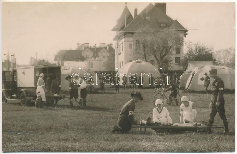 1930 Bucharest, Bukarest, Bucuresti, Bucuresci; Red Cross first aid practice in the scout camp. Foto Tehnica photo