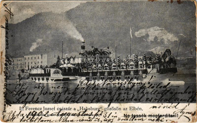 1902 I. Ferenc József császár a "Habsburg" gőzösön az Elbén....