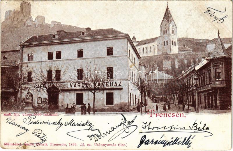 1900 Trencsén, Trencín; vár, templom, Café de Ville városi kávéház. Sz...