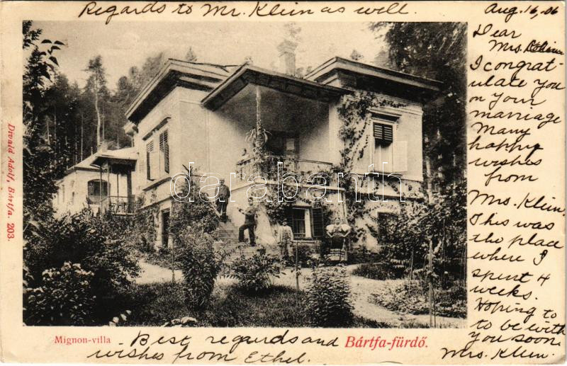 1906 Bártfafürdő, Bardejovské Kúpele, Bardiov, Bardejov; Mignon villa. Divald Adolf 203. / villa (EK)