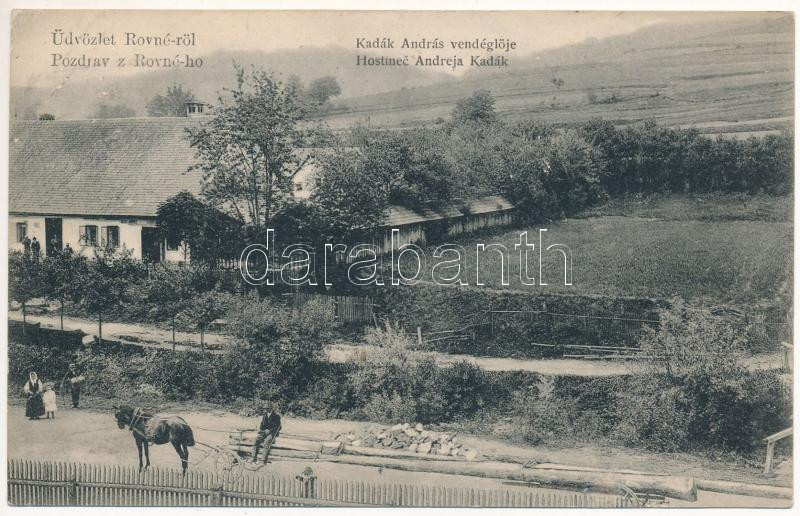 1906 Nagyróna, Rovné, Velké Rovné; Kadák András vendéglője. Spiegel Jakab (Nagybiccse) kiadása / Hostinec / restaurant (EK)
