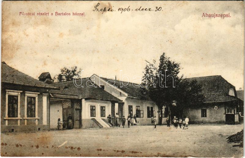 1906 Szepsi, Abaújszepsi, Moldava nad Bodvou; Fő utca részlet a Bartalos házzal / main street (fl)