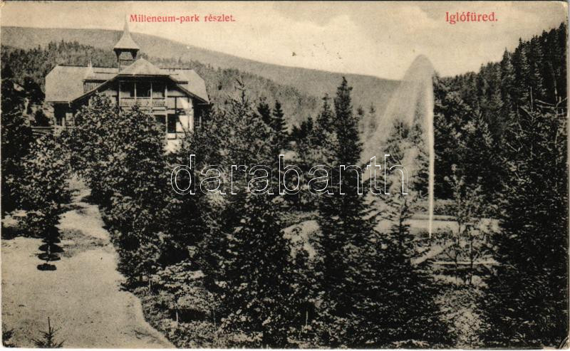 1912 Iglófüred, Bad Zipser Neudorf, Spisská Nová Ves Kupele, Novovesské Kúpele; Millenium szálloda és park. Ferencz D. kiadása / hotel and park