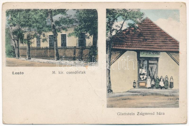 1917 Lontó, Lontov (Ipolyszakállos, Sakálos, Ipelsky Sokolec); M. kir. csendőrlak, Glattstein Zsigmond háza és üzlete / gendarme villa, shop (fa)