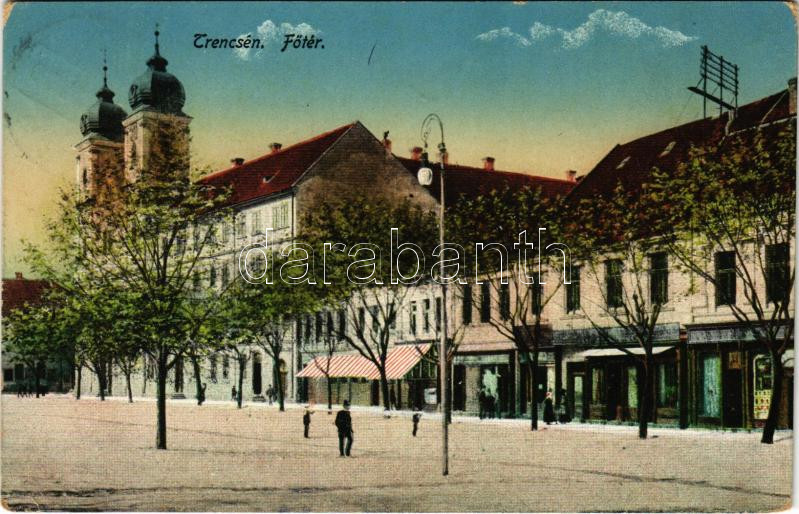 1917 Trencsén, Trencín; Fő tér, üzletek / main square, shops (EK)
