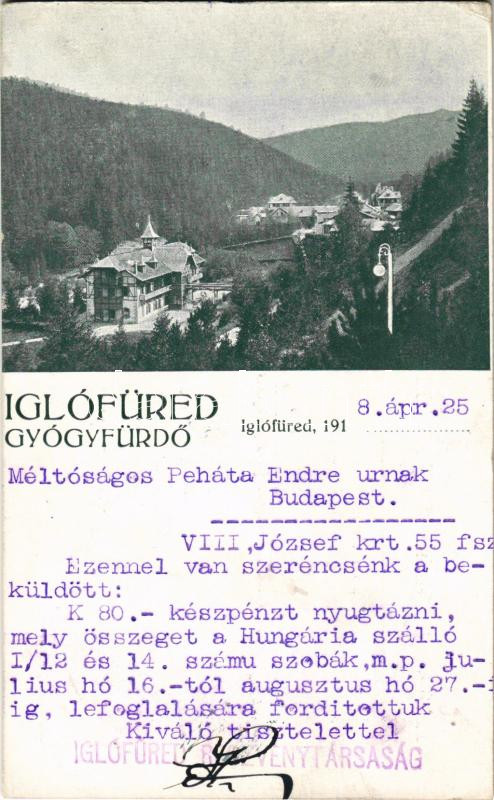 1918 Iglófüred, Bad Zipser Neudorf, Spisská Nová Ves Kupele, Novovesské Kúpele; gyógyfürdő látképe. Iglófüred részvénytársaság visszaigazoló levelezőlapja / spa
