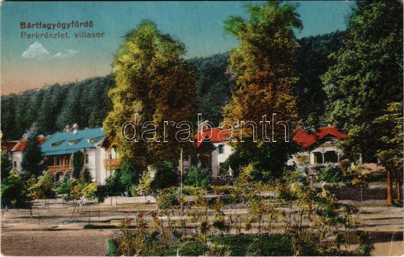 Bártfa, Bártfafürdő, Bardejovské Kúpele, Bardiov, Bardejov; park részlet, villa sor / park, villas (szakadt / tear)
