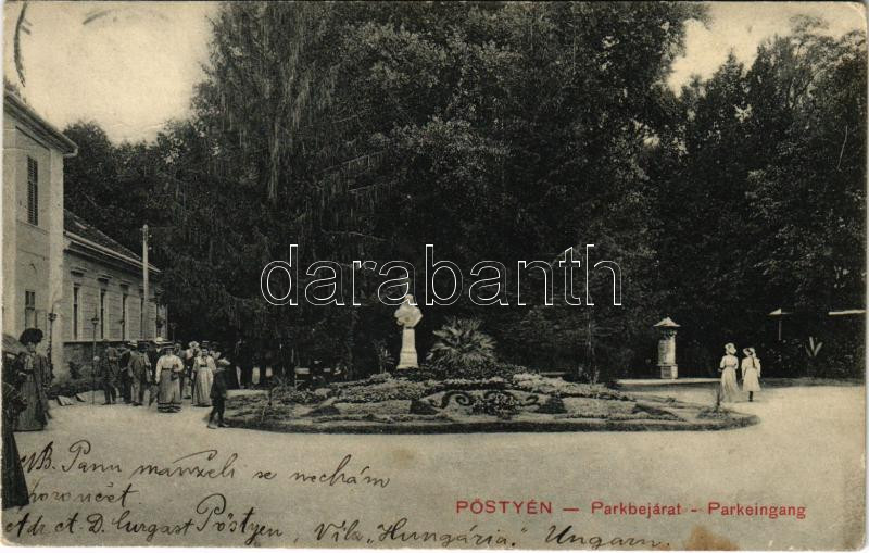 Pöstyén, Piestany; Erzsébet királynő szobor, park bejárat. Giosz H. kiadása / Sissi statue, park entrance (fl)