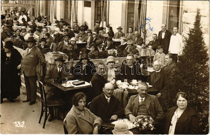 Description: Trencsénteplic, Trencianske Teplice; Caffee Grand Hotel nagyszálloda és kávéház terasza vendégekkel és pincérekkel / spa hotel and café, terrace with guests and waiters. Alfred Jansky photo