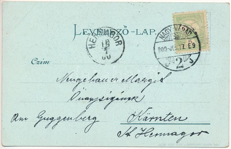 1900 Nagyvárad, Oradea; Városi színház. Lang József kiadása / theatre. Art Nouveau, floral, litho (EB)