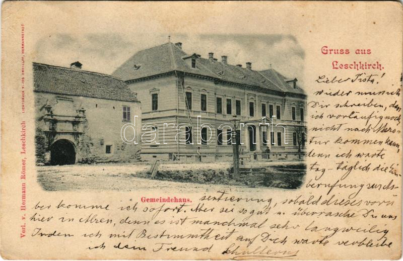 https://www.darabanth.com/en/457-Online-auction/457.0/Postcards/Transylvania~1000006/1902-Ujegyhaz-Leschkirch-Nocrich-Kozseghaza-Hermann-Romer-kiadasa-Gemeindehaus-town-h~II3056641