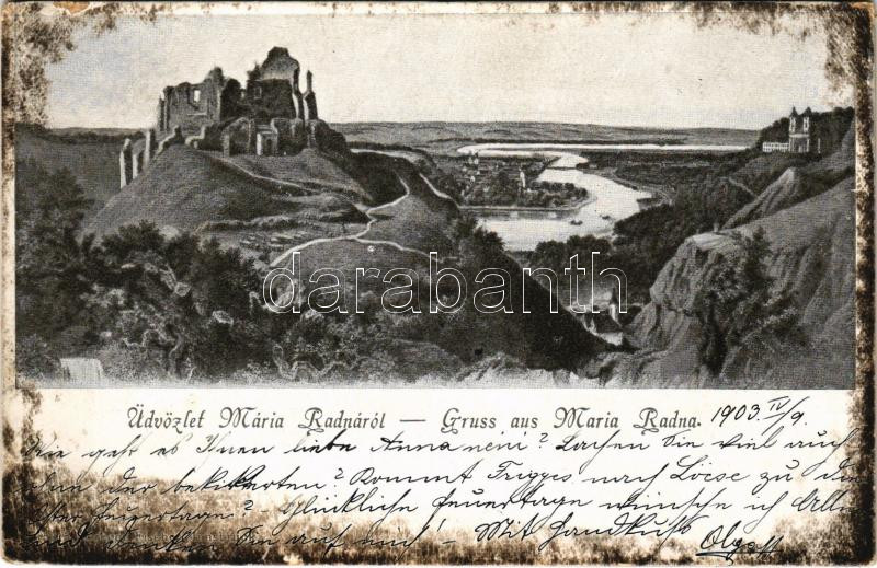 1903 Lippa, Lipova; Solymosi vár, Máriaradna. Gregor Fischer kiadása / Cetatea Soimos / castle ruins, Radna (kis szakadás / small tear)