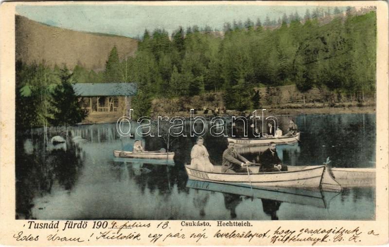 1904 Tusnád-fürdő, Baile Tusnad; Csukástó, Bálint és Neptun csónakok. ...