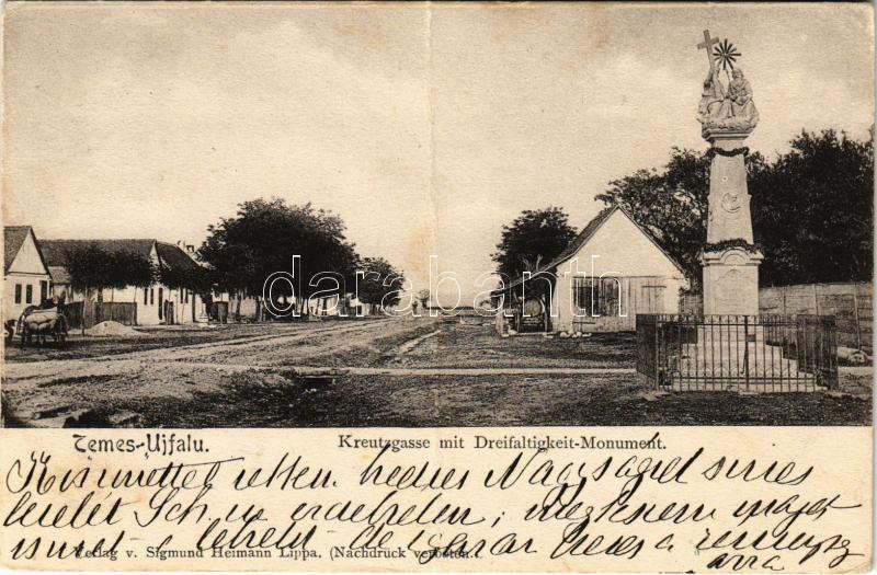 https://www.darabanth.com/en/457-Online-auction/457.0/Postcards/Transylvania~1000006/1907-Temesujfalu-Temes-Ujfalu-Neudorf-Kreutzgasse-mit-Freifaltigkeit-Monument-Kereszt-utca-S~II3051490