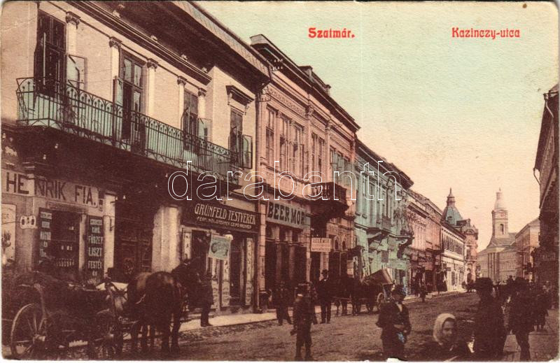 1908 Szatmárnémeti, Satu Mare; Kazinczy utca, Grünfeld Testvérek, Beer...