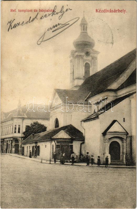 1912 Kézdivásárhely, Targu Secuiesc; Református templom és bérpalota. ...