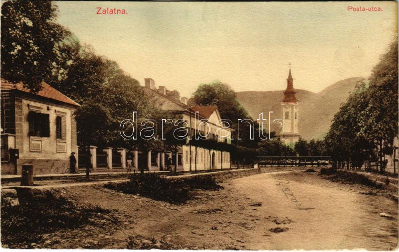 1913 Zalatna, Zlatna; Posta utca, templom / street view, church (r)