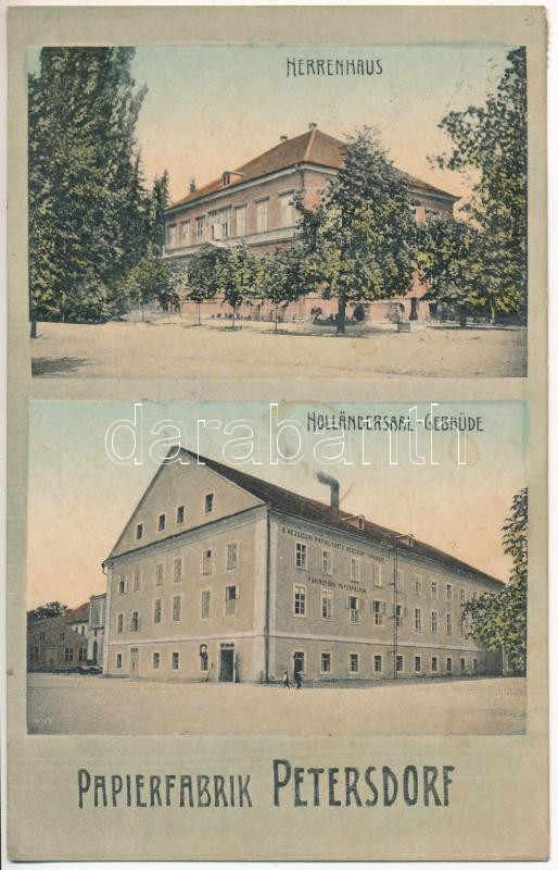 1914 Péterfalva, Petersdorf, Petresti (Szászsebes, Mühlbach, Sebes); Papierfabrik, Herrenhaus, Holländersaal-Gebäude / Papírgyári épületek, a Nezsideri Papírgyártó Részvénytársaság papírgyára. J. Hientz kiadása / paper factory, paper mill (EK)