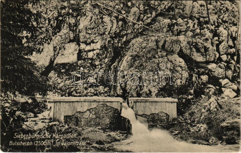 Description: 1915 Bucsecs-hegység, Butschetsch, Muntii Bucegi; Erdélyi Kárpátok, vízesés a Jalomica-völgyben. Verlag Karpathenwacht Nr. 29. Phot. Dr. Siegfr. Gusbeth / Siebenbürgische Karpathen, Butschetsch im Jalomitzatal / Valea Ialomitei / waterfall in the valley (EK)
