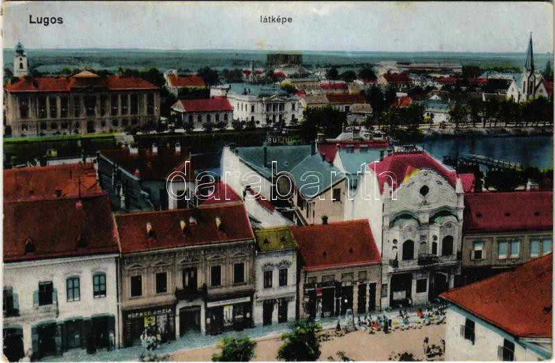 1918 Lugos, Lugoj; látkép, piac, üzletek / general view, market, shops...