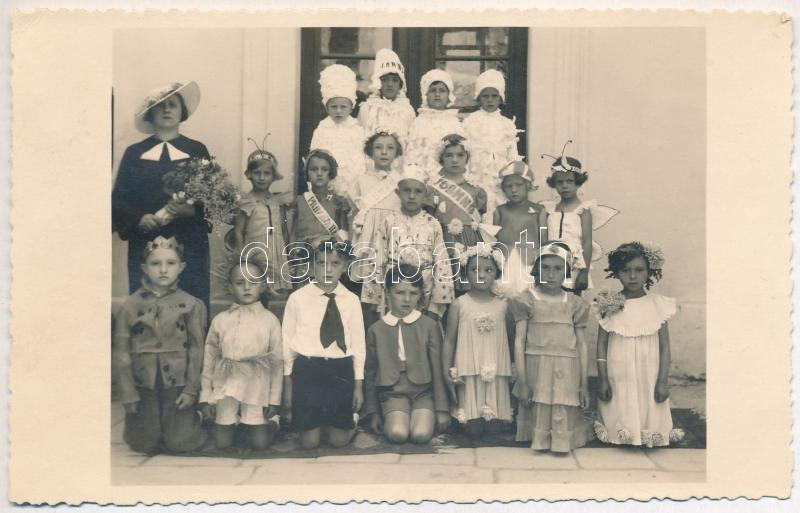 1936 Déva, Iskolai előadás jelmezbe öltözött gyerekekkel / school play, children in costumes. photo