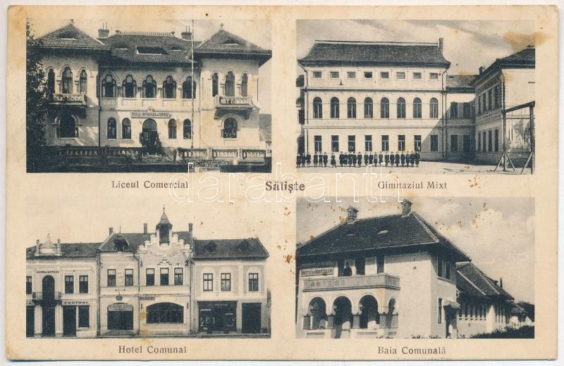 1939 Szelistye, Salistea Sibiului, Saliste; Liceul Comercial, Gimnaziul Mixt, Hotel Comunal, Baia Comunala / Gimnáziumok, szálloda, fürdő / grammar schools, hotel, bath (fl)