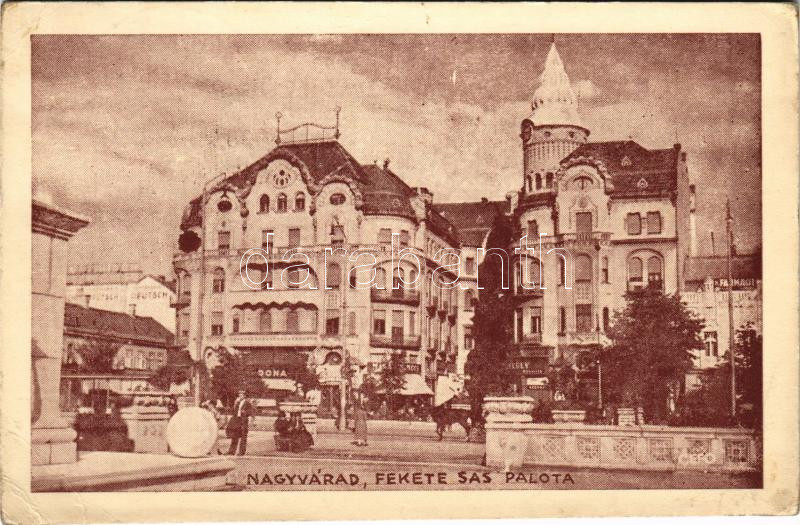 https://www.darabanth.com/en/457-Online-auction/457.0/Postcards/Transylvania~1000006/1940-Nagyvarad-Oradea-Fekete-Sas-palota-hotel-plus-1940-Nagyvarad-visszatert-So-Stpl-EB~II3051616