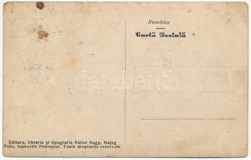 Hátszeg, Hateg; Piata Regele Ferdinand, Primaria, Hotel si Restaurant Mielul de Aur, Cafenea / Ferdinánd király tér, Városháza, szálloda, étterem és kávéház, üzletek. Bálint Nagy kiadása / square, town hall, hotel, restaurant and café, shops (fl)