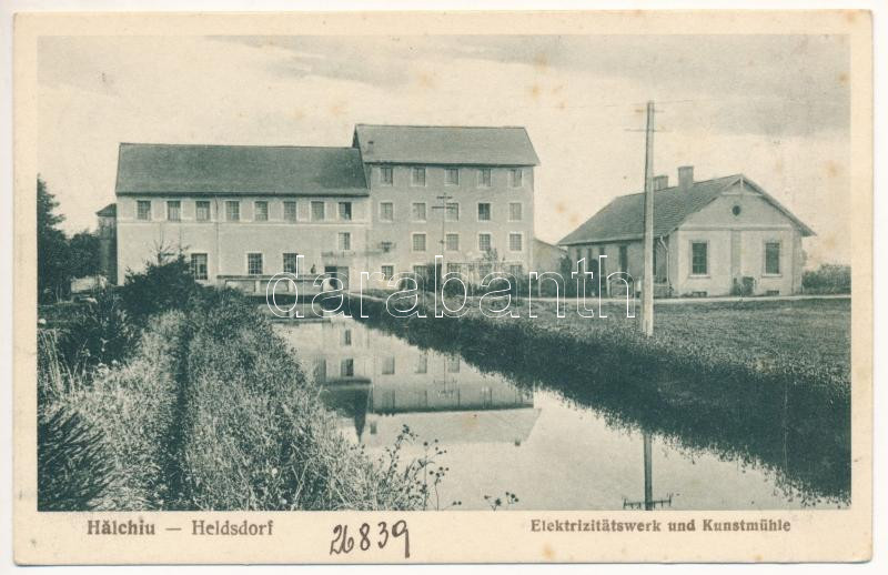 Höltövény, Heldsdorf, Halchiu; Elektrizitätswerk und Kunstmühle / Elektromos művek és műmalom / electric power plant and mill (fa)