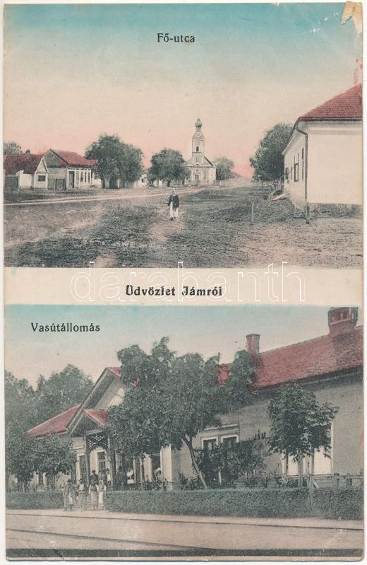 Jám, Iam (Bánság); Fő utca, vasútállomás / main street, railway station (ázott / wet damage)