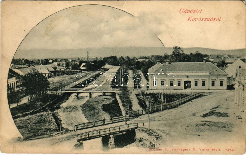 Kovászna, Covasna; látkép, híd. Bogdán F. fényképész / general view, bridge (ázott / wet damage)