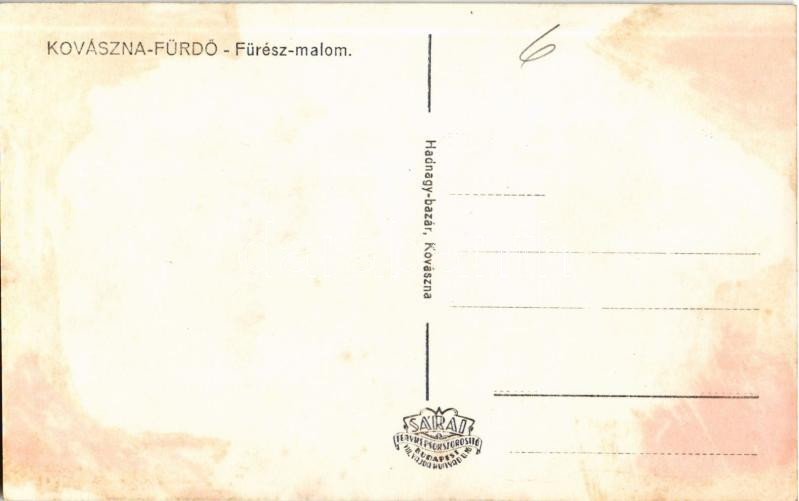 Kovászna-fürdő, Baile Covasna; Fűrész malom / sawmill (fl)