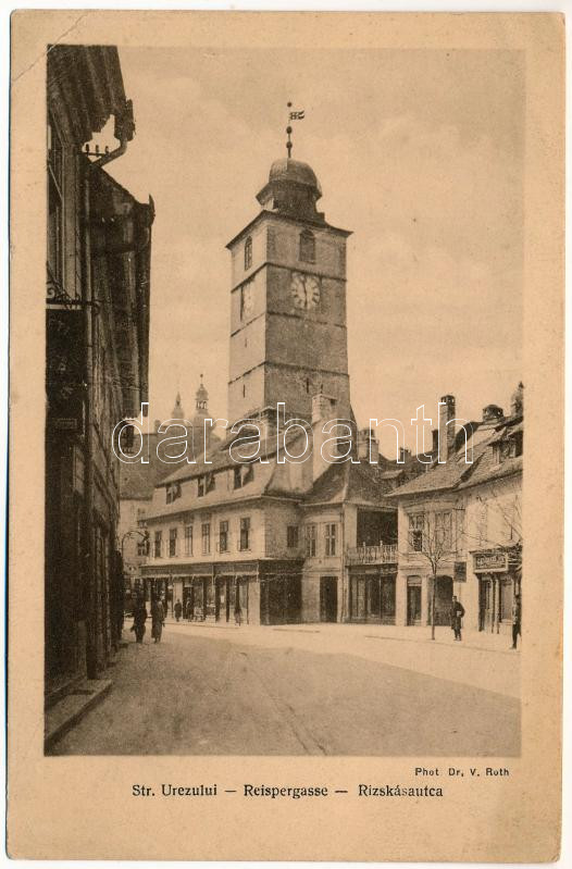 https://www.darabanth.com/en/457-Online-auction/457.0/Postcards/Transylvania~1000006/Nagyszeben-Hermannstadt-Sibiu-Str-Urezului-Rizskasa-utca-uzletek-templom-Reispergasse-~II2995666