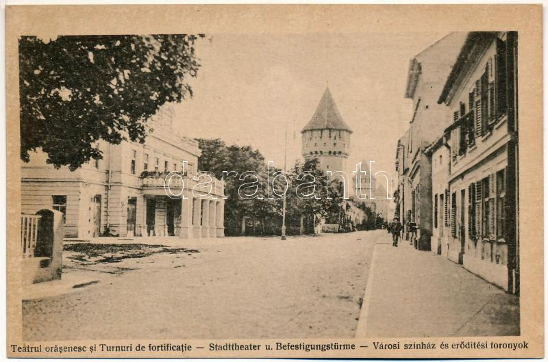 Nagyszeben, Hermannstadt, Sibiu; Teatrul orasenesc si Turnuri de forti... https://www.darabanth.com/en/457-Online-auction/457.0/Postcards/Transylvania~1000006/Nagyszeben-Hermannstadt-Sibiu-Teatrul-orasenesc-si-Turnuri-de-fortificatie-Stadttheater-u-Befe~II2995674